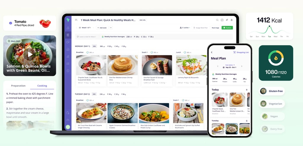 Our weekly Meal Plans emphasize whole, regeneratively grown foods customized to match your activity level, dietary restrictions, and personal tastes. Enjoy our convenient Everfit App to access recipes, your shopping list, and track your macros . Eating nutrient-dense foods supercharges your body's recovery and muscle growth.
